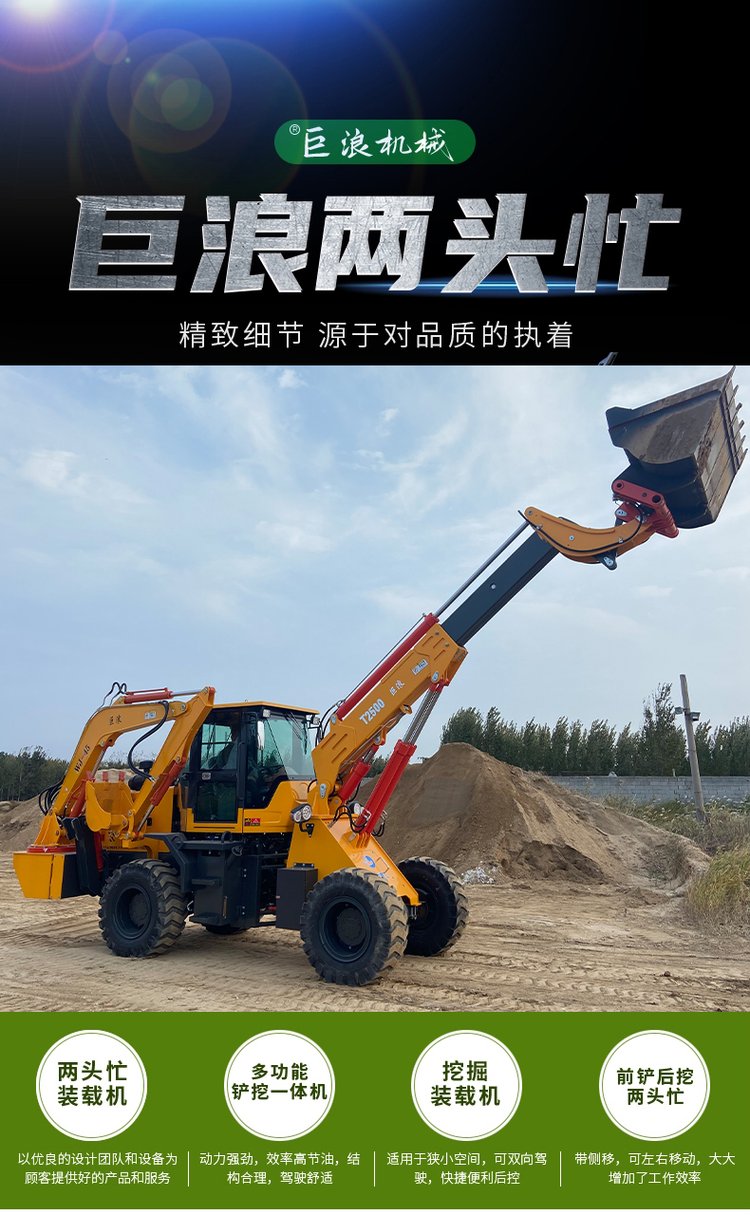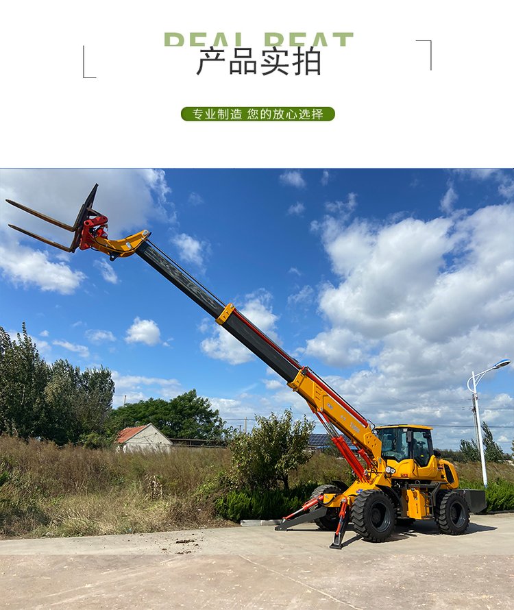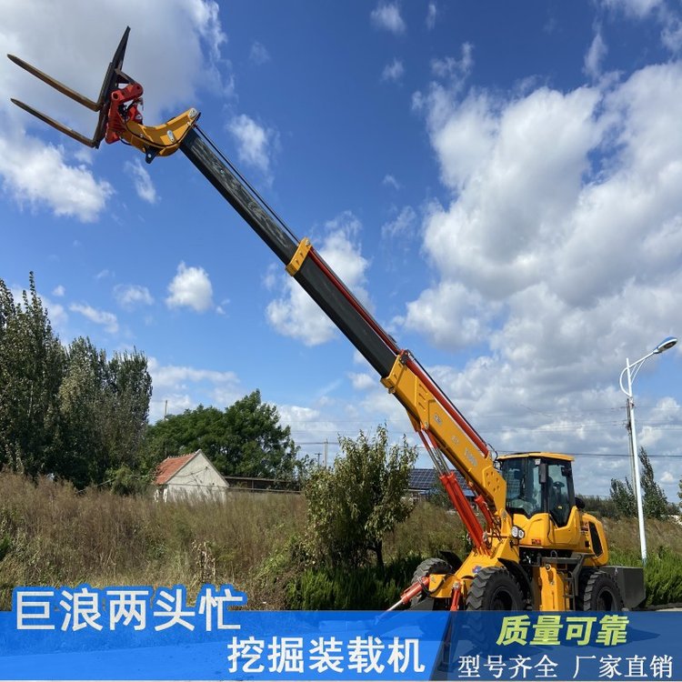四輪驅動,具有兩輪轉向、四輪轉向及蟹行轉向模式,越野能力強,適應不同作業(yè)場合;兩頭忙,伸縮臂裝載機。