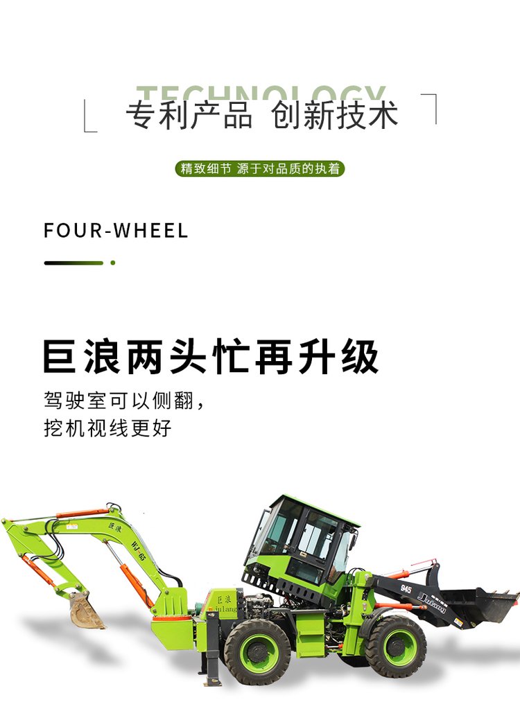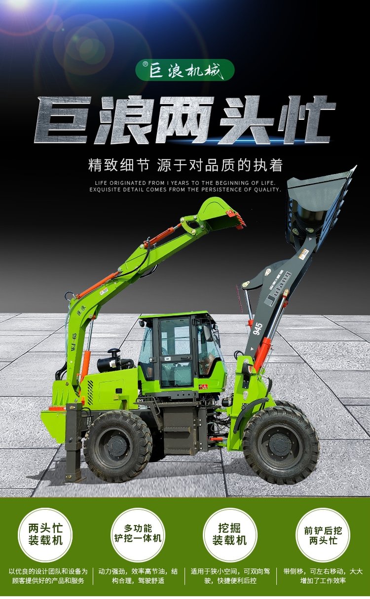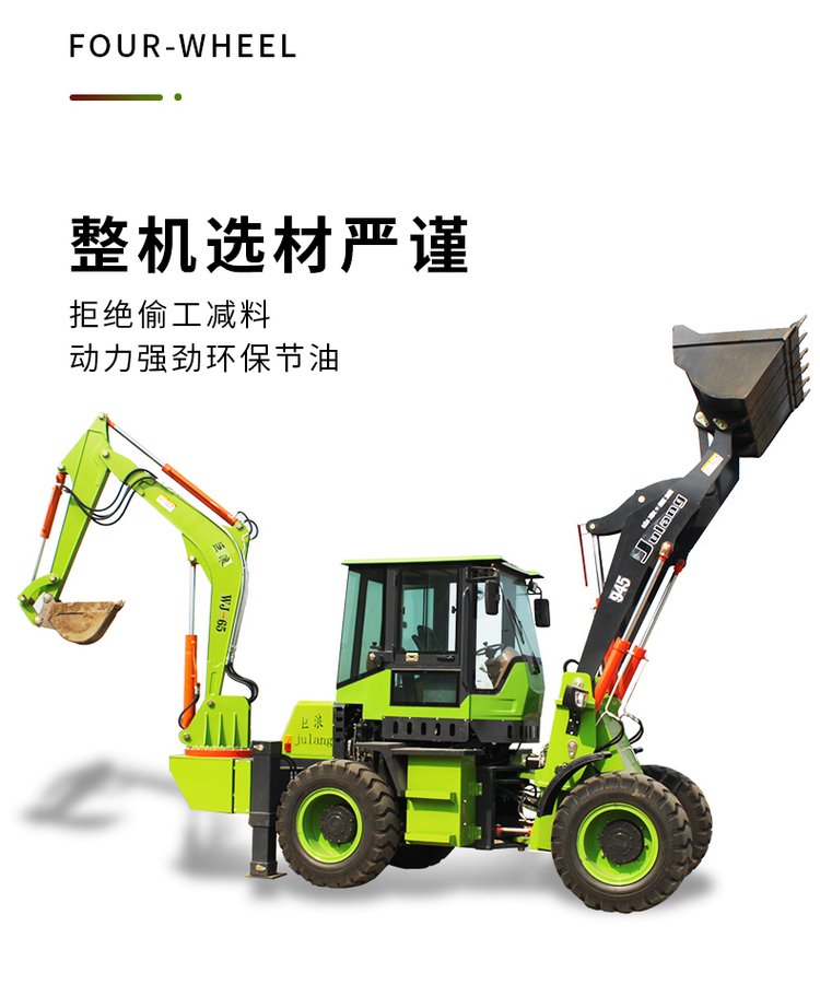 連接復(fù)合動作一拖二操作手柄,簡介易操作由于它具有共同的結(jié)構(gòu),前端是裝載設(shè)備,后端為發(fā)掘設(shè)備。在施工時(shí),操作手只需求翻滾一下座椅,就可以結(jié)束從裝載機(jī)到發(fā)掘機(jī)的改動。鏟挖一體機(jī)首要用于城市和村莊的公路制作及維護(hù)、電纜鋪設(shè)、電力和機(jī)場工程、市政制作、農(nóng)田水利制作、村莊住宅制作、開山取石以及各種小型建筑隊(duì)所從事的各種建筑施工工程。“兩頭忙”歸于小型多功能工程機(jī)械的一種,一般在大工程結(jié)束后的小工程中運(yùn)用。它可配多種作業(yè)設(shè)備及輔具,進(jìn)行發(fā)掘、鏟裝、路面破碎、平整場所、開挖水溝、鋪設(shè)管道等多種作業(yè)。